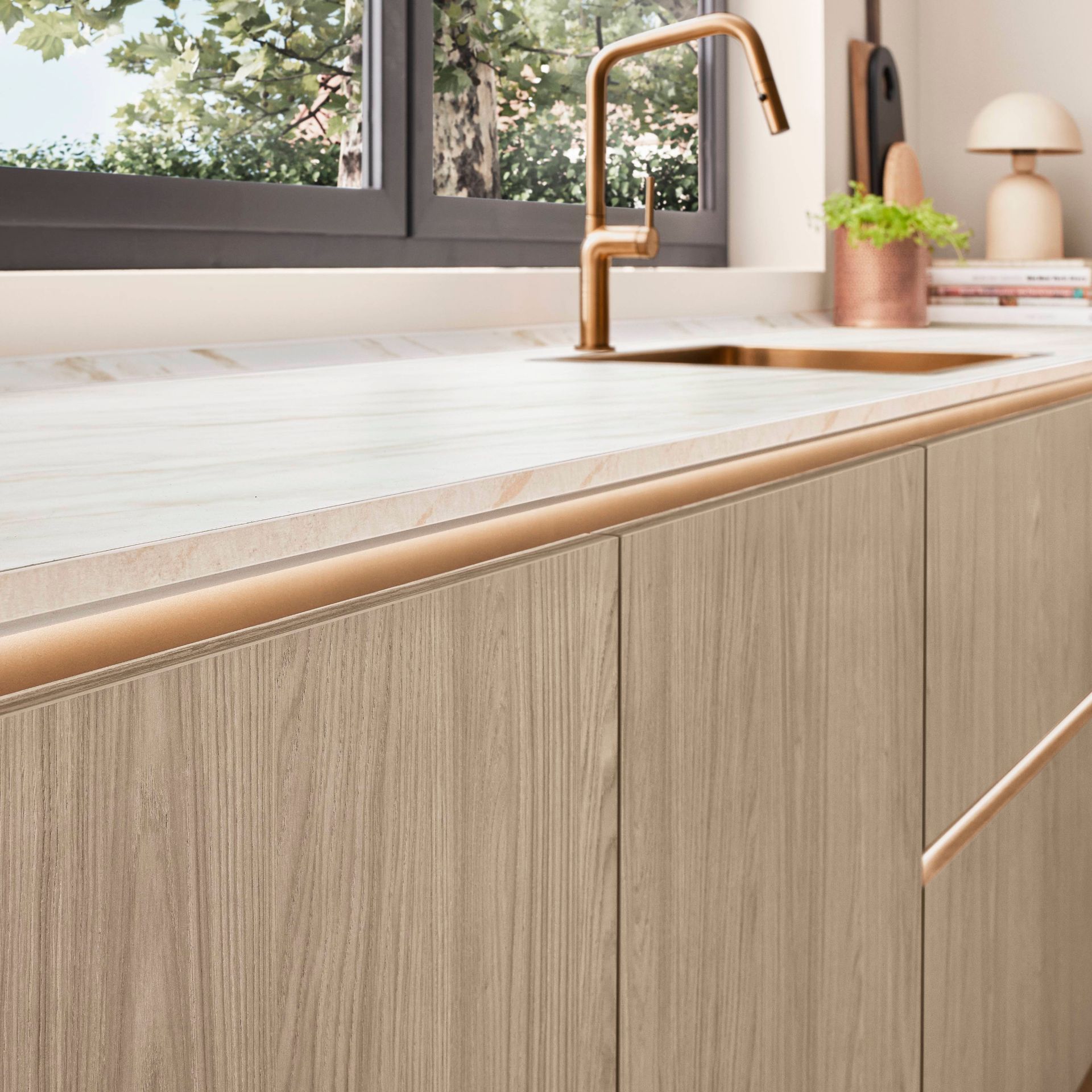 Holzoptiken sind die zentralen Elemente für die von der Natur inspirierten Küche VILLACH_WIEN von PAUL LEVÍN und schaffen Behaglichkeit, die zu jedem Einrichtungsstil passt. Materialien wie Marmor oder Granit bringen gemeinsam mit den facettenreichen Holzdekoren die Schönheit der Natur in Ihren Alltag.