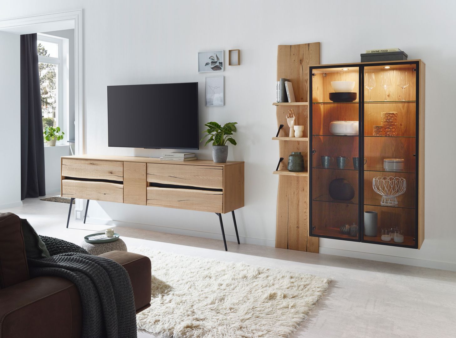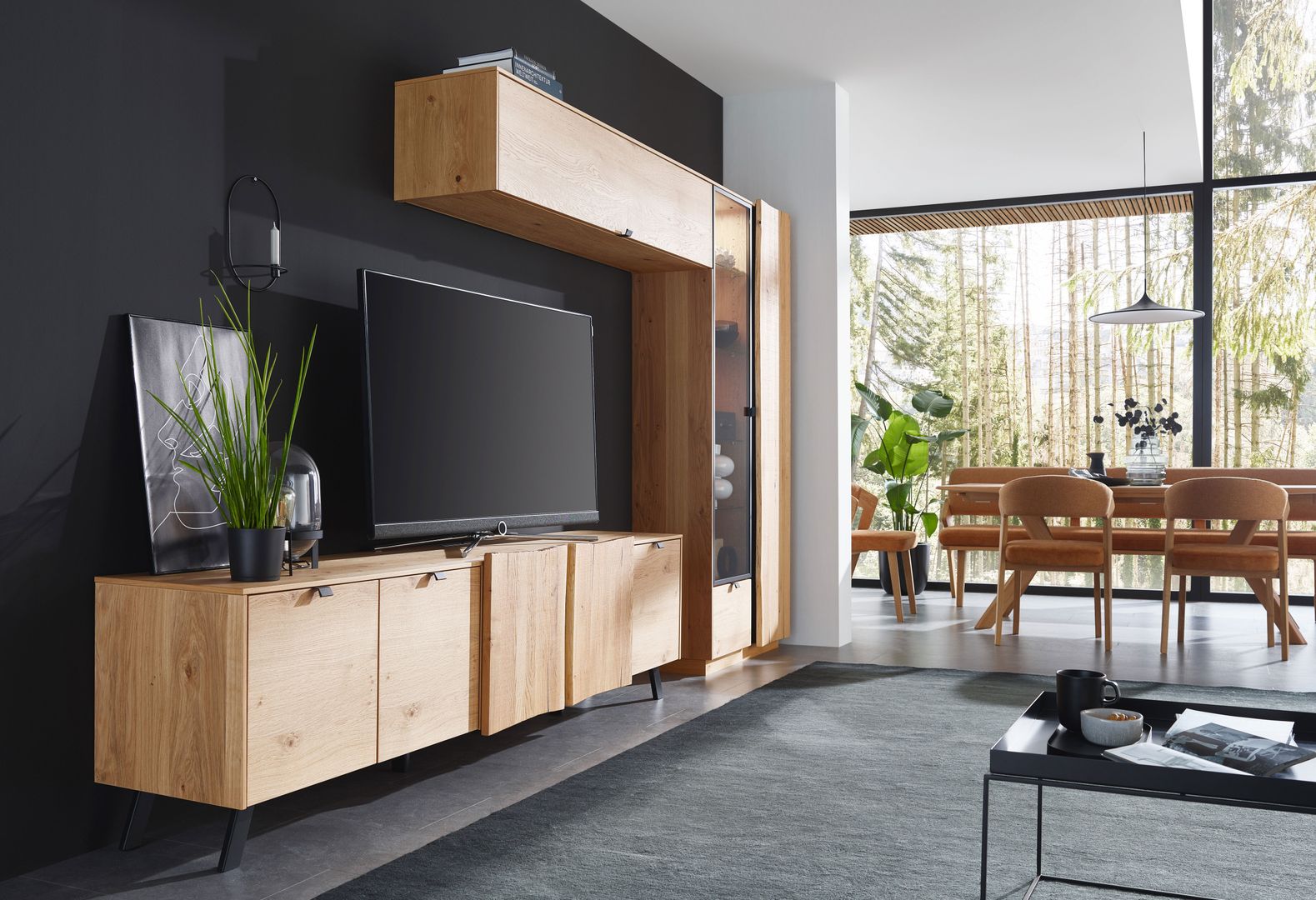 Im Wohnzimmer darf es auch ein bisschen mehr sein. Purismus ist das Eine, der topaktuelle Trend nach üppiger Deko das Andere. Es muss nicht immer schlicht sein und weniger ist auch nicht immer mehr. Deshalb halten auch wieder Samt, Seide und Brokat Einzug in unsere Wohnzimmer. Dazu gesellen sich warme Holztöne bei Regalen, Kommoden, Vitrinen und TV-Möbel.